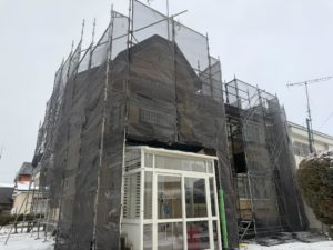 足場が組み終わりました。
