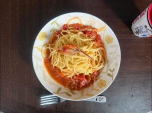 久しぶりにお昼はカニのトマトクリームパスタにしました♪